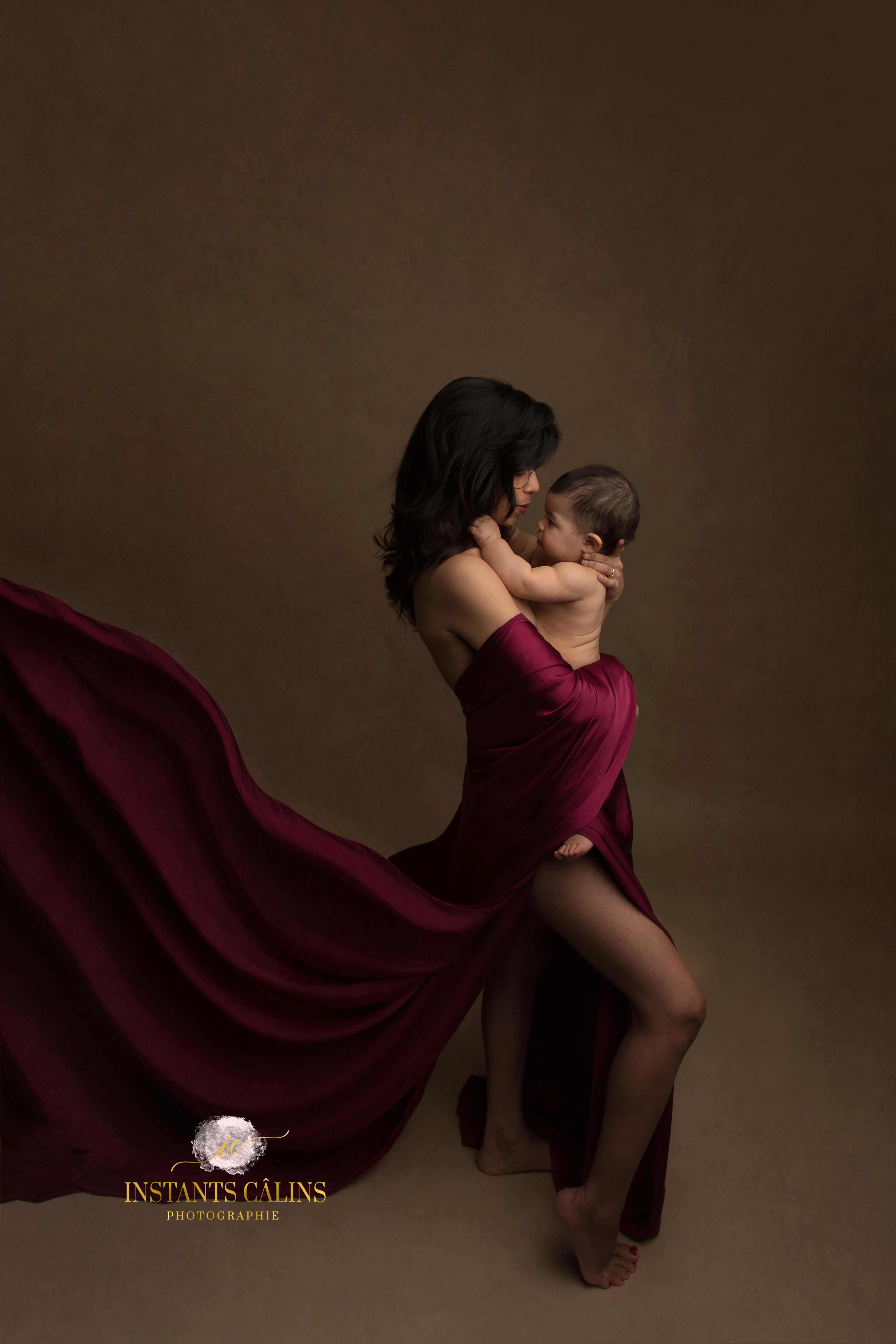 Une Séance Maman et Moi artistique avec des robes , des voilages , vos tenues également sont possible pour un petit côté mode… mais surtout de l’amour ❤ ❤